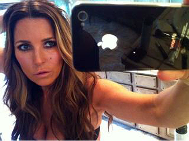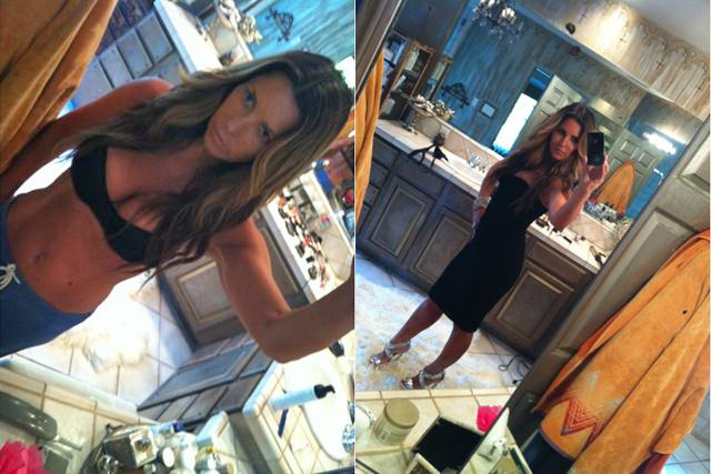 What better way to celebrate Mother’s Day than to post a picture of one of the hottest celebrity MILF’s out there, Jillian Barberie (Reynolds), and her iPhone. These backstage “before and after” makeup shots of Jillian getting ready for her hosting gig on Good Day L.A. really help point out just how amazing Jillian’s physique is, and for my money, the “before” shot in yoga pants is 10 times hotter than the dolled up “after”. Truly inspiring.
