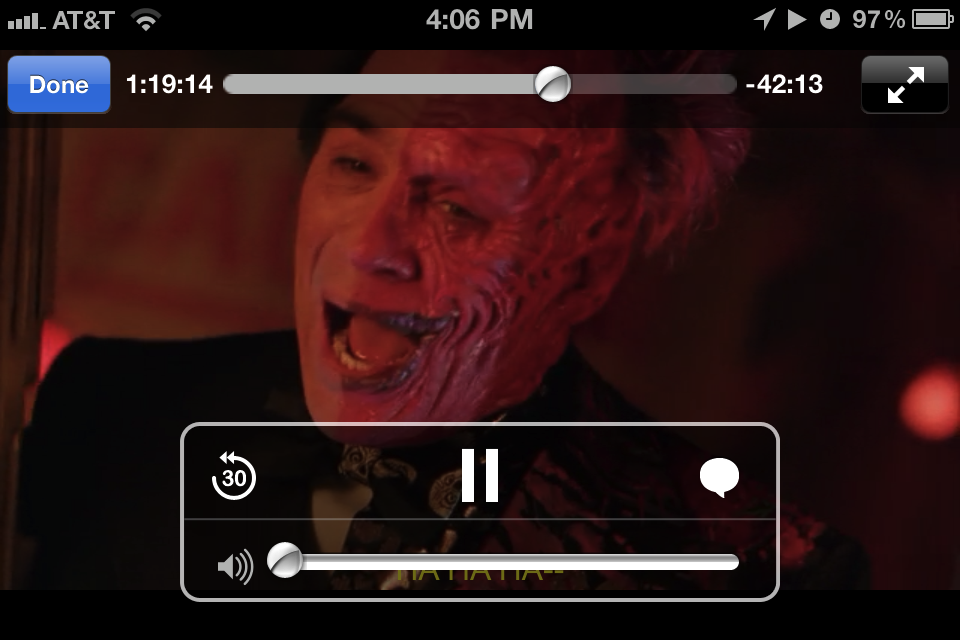 Aside from avoiding horribly spoken dialogue, closed captions are actually a pretty sweet thing if you’re someone who regularly watches movies on your iPhone while at the gym or other high-noise area. For the moment your only subtitle options seems to be ENGLISH or OFF, and the little subtitles balloon doesn’t appear on every Netflix offering (Firefly, for instance, does not seem to support it) but I’m sure they will trickle through eventually.