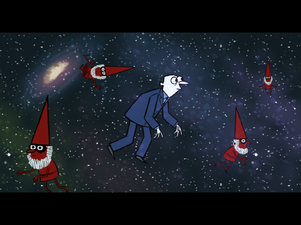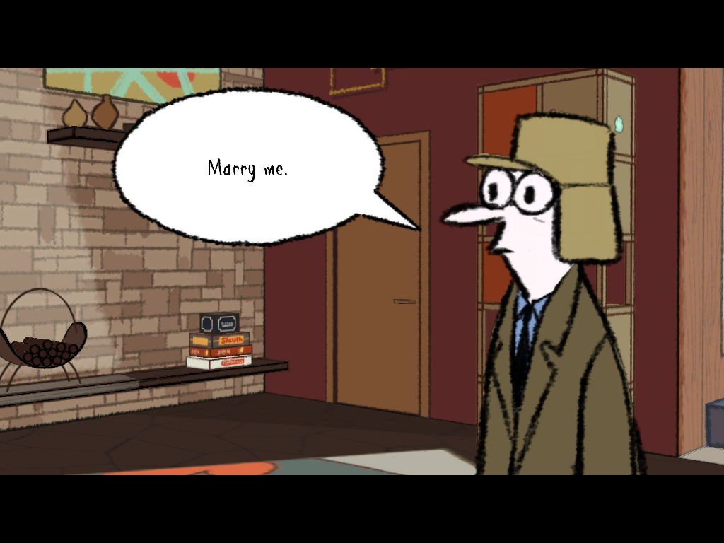 Just as with the first Puzzle Agent, the game really draws a great deal of its charm from Graham Annable’s somewhat crude illustrations and not-all-that-fluid animations. 90% of the game is simply dialogue, and the Muppet-esque “fish eye”-looking stares of the characters and long awkward pauses can at first seem a little off-putting, but eventually you realize that it all helps create the mood of Annable’s “Grickle” universe where Puzzle Agent is set.