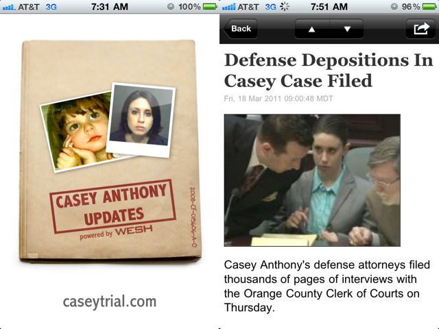 Oh, did I say developers, PLURAL? Yes. There’s more than one. Check out Casey Anthony Updates 99¢ by Hearst Television. I don’t know which app came first, but I admire that they flipped the “case file” photos to really set the apps apart.