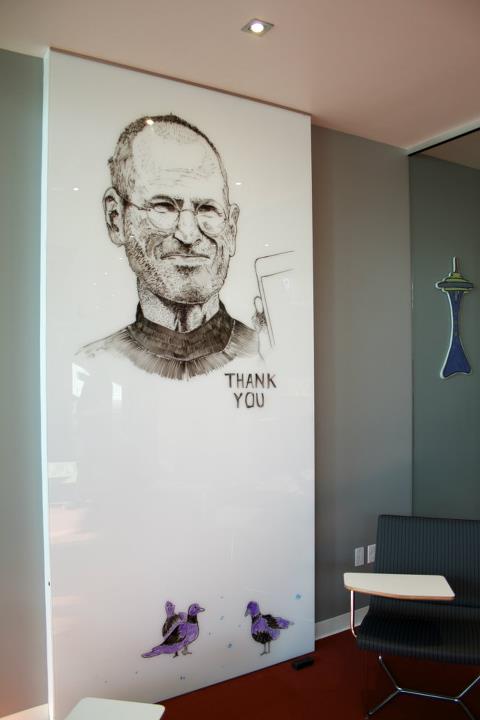 Anyone else love the smell of dry erase markers? And glue? And deadly chemicals in general? Well, check out this sweet Steve Jobs portrait made on iPhone development house Übermind’s whiteboard. (Timelapse video below).