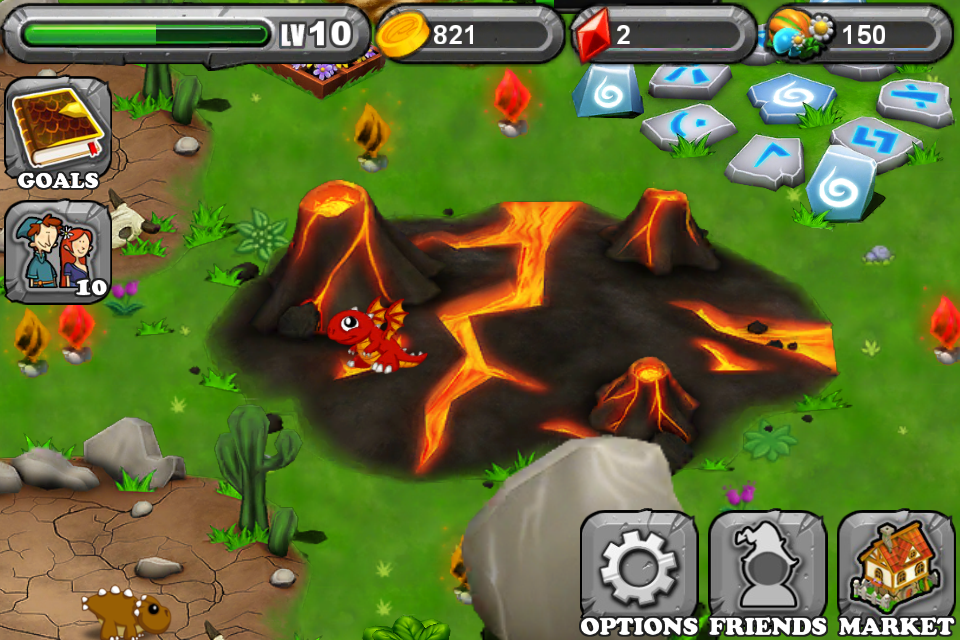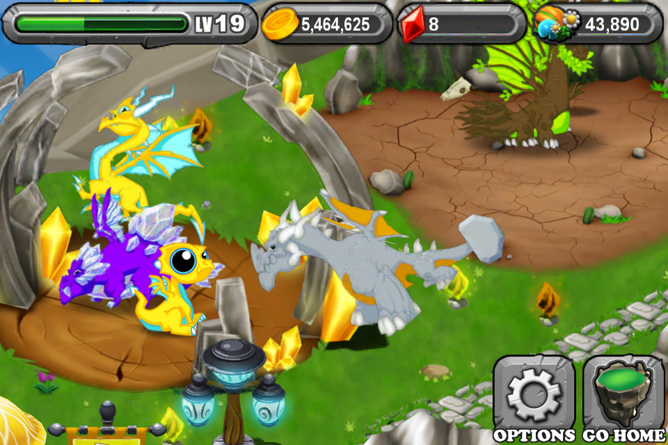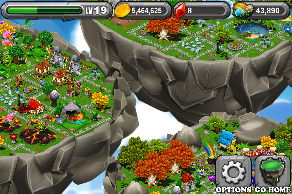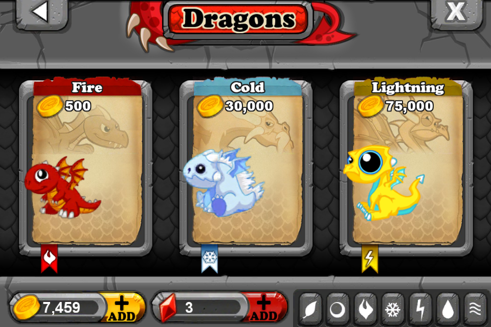 Two of the biggest things DragonVale has going for it is that unlike other similar games, like God Finger, there is no real downside to not playing DragonVale for a couple of days. Your gold does not “spoil” or anything if you neglect your park, you simply don’t make any more money than each exhibit can generate until you collect that money. But second, and more central to what makes DragonVale so fun to play, is the ability to cross breed your dragons and create entirely new races of dragons. For example, you might decide to cross a Fire Dragon with an Earth Dragon and create a Lava type dragon, or a Plant and Fire Dragon to create a Poison type Dragon. For some reason there’s a very Pokemon feel to the game in that each of your dragons starts out so adorably cute that you might not want to evolve them, but bigger dragons bring in bigger paydays, so feed them you will until they turn into very cool-looking adults.