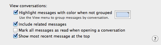 Or, we could uncheck the “include related messages” box in Mail’s prefs. (below)