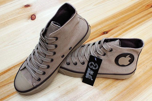 I’m seriously thinking of moving to China, just to save on the shipping costs of all the awesome Apple-related knockoffs I end up buying. Case in point, check out these awesome $5 Apple logo sneakers they have over there!