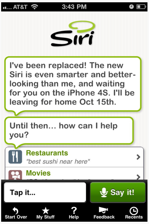 and Siri, i’m sure he can get you laid, the girl in the corner’s digits, and your favorite drink, while checking everyone’s facebook relationship page, how far removed they are from your wife/girlfriend and calculating the best odds you have with which girl, based on your past cool self and even coach you on what lines to use, but can he get apple to pick up your bar tab and that smug look swiped off your face before you approach her and find out Siri was only joking 😉