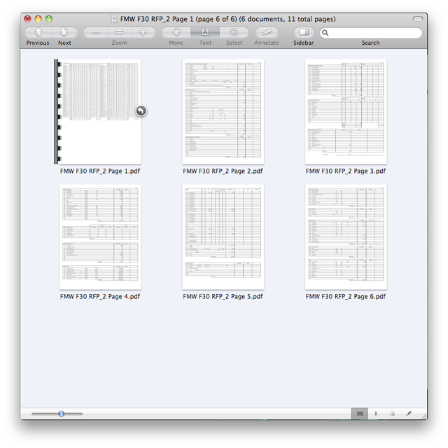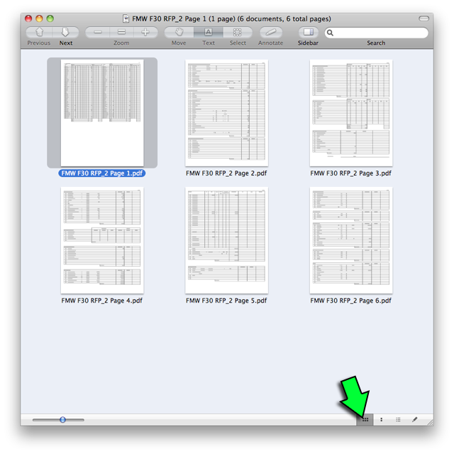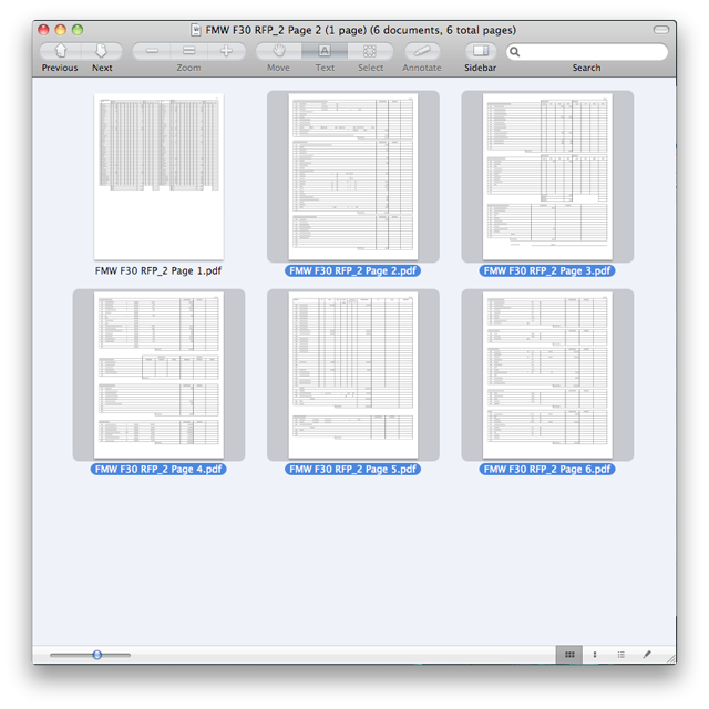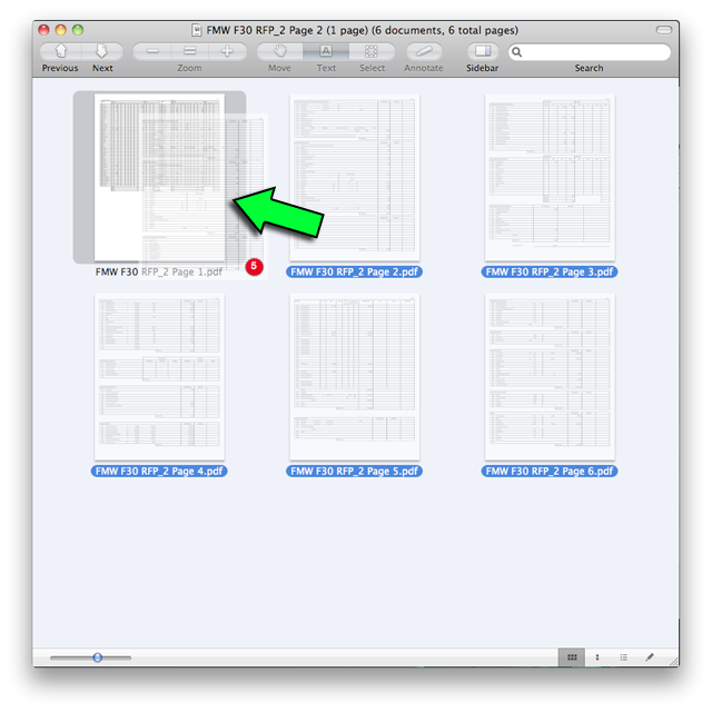 Step one: Drag all 6 PDFs onto the Preview icon to open them.