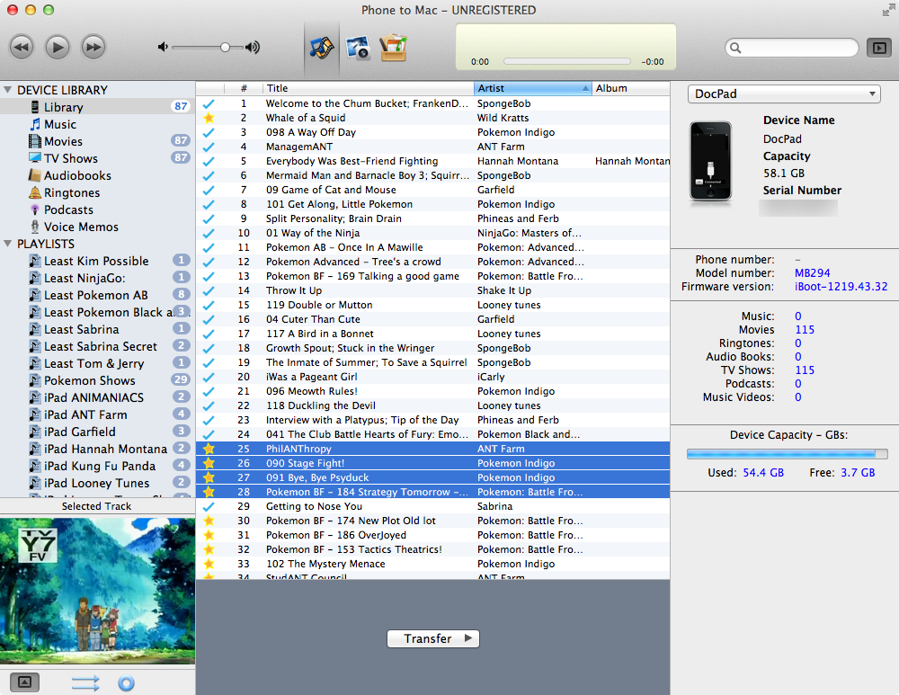 It then occurred to me that between their iPod touches and my iPad, I actually might still have a fair amount of those shows saved – that is unless my kids had plugged them in to recharge which would initiate a sync with my empty iTunes playlists and erase all the shows! I quickly grabbed their iDevices, put them in Airplane mode, and began searching for a tool to rip back all my media from my devices.