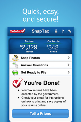 Tax season is (unfortunately) upon us. I have used TurboTax online a few times in the past to do my taxes but never even thought about checking into whether there was “an app for that”. Well, surprise surprise, there is! It’s called TurboTax SnapTax (iTunes free) and it is actually quite cool (for an app revolving around filing your taxes, at least). You can use your iPhone (or iPad/iPod if it has a camera) to upload your W-2’s and other tax documents instead of dealing with the hassle of scanning them or risking forgetting one on your way to the accountant.