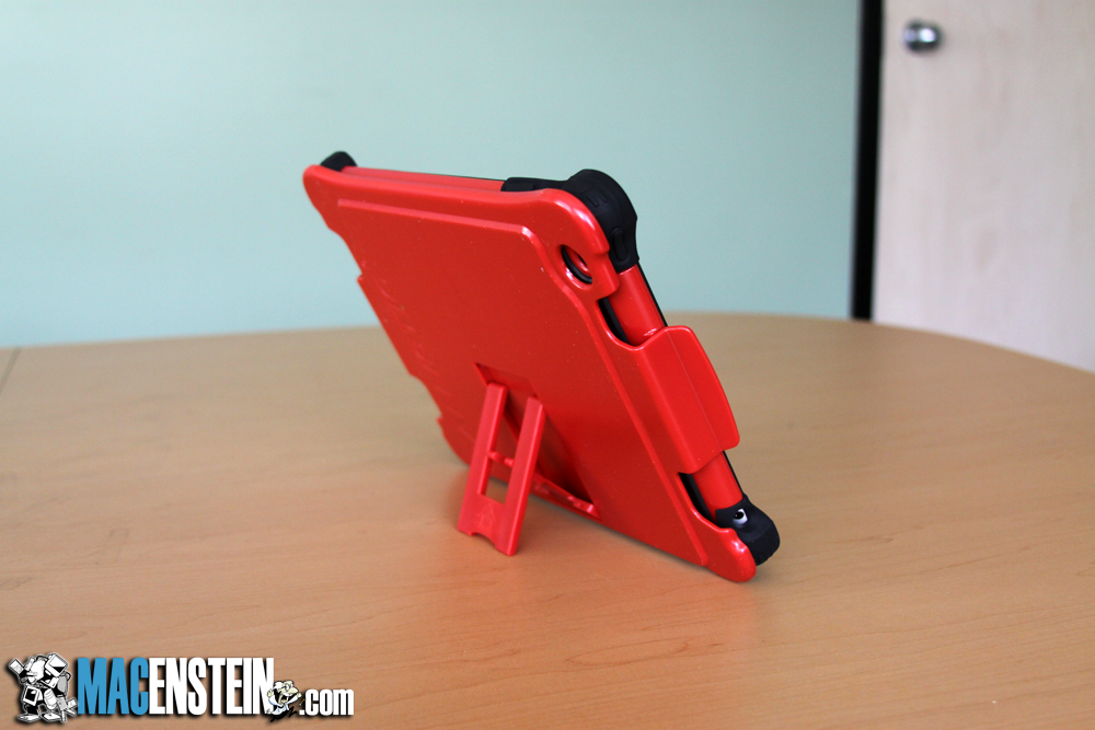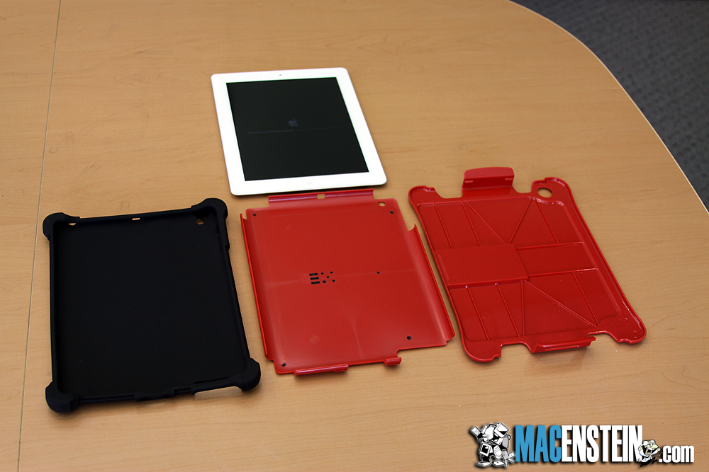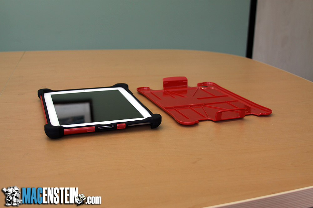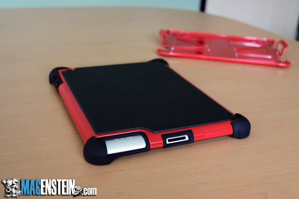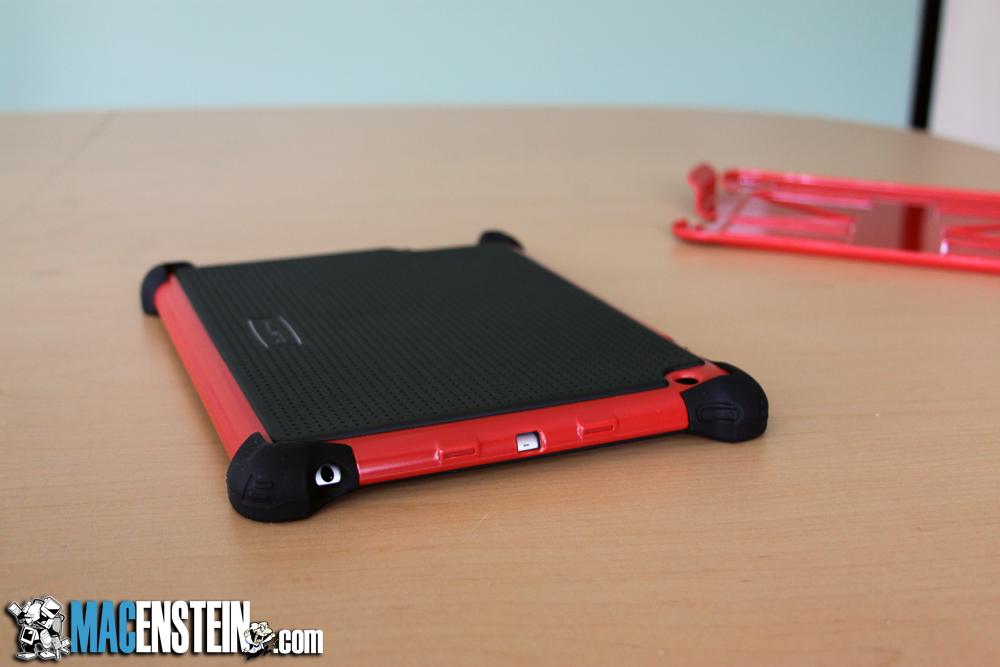 By far the best feature of the case is the design of the black rubber of layer 1. The corners of the layer one are oversized, and quite thick, which not only means they provide good impact resistance, but they are also thick enough that even if you lay your iPad face-down, the screen will never come in contact with the table top.