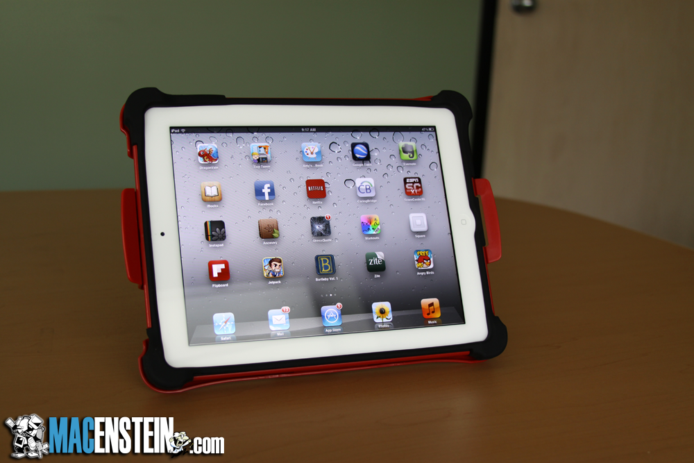 The concept of an ultra-protective, drop-proof tough case for your iPhone makes sense to most people, as the iPhone is small, a little slippery, and is probably taken in and out of your pocket 100 times a day, or jostled around in a car cup-holder as you drive, or taken to the track while you attempt to complete one of the various “Couch to 5K” apps (which I have never stuck with past week 4). The iPhone is an “active” device, and therefore quite prone to drops if you are not careful, so yes, a tough case makes sense. However, the iPad, at least at first glance, shouldn’t need such protection, right? After all, it’s mainly kept in your house, left on your coffee table or night stand next to a cushy bed. There’s a sense of “calm” about it. It feels like you should sip tea while slowly reading the day’s news on it, sock-clad feet curled under you in a big, gushy chair, and Lord knows you certainly aren’t going to go running at the track with it, right?