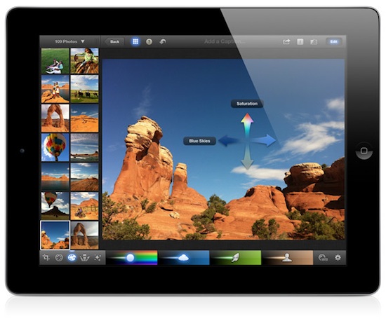 iLife updates: iPhoto was the clear breakout star of the iLife world today, and with good reason – you really shouldn’t use iMovie and Grarage Band on an iPad. So this is a bit of a mixed bag depending on which, if any of these apps, you use on your iPads. Garage Band gets a small update, more or less tying it in tighter with iCloud, and iMovie has more dumbed down, “professional” templates that should make the 8-14 year old crowd feel like they’ve accomplished something.