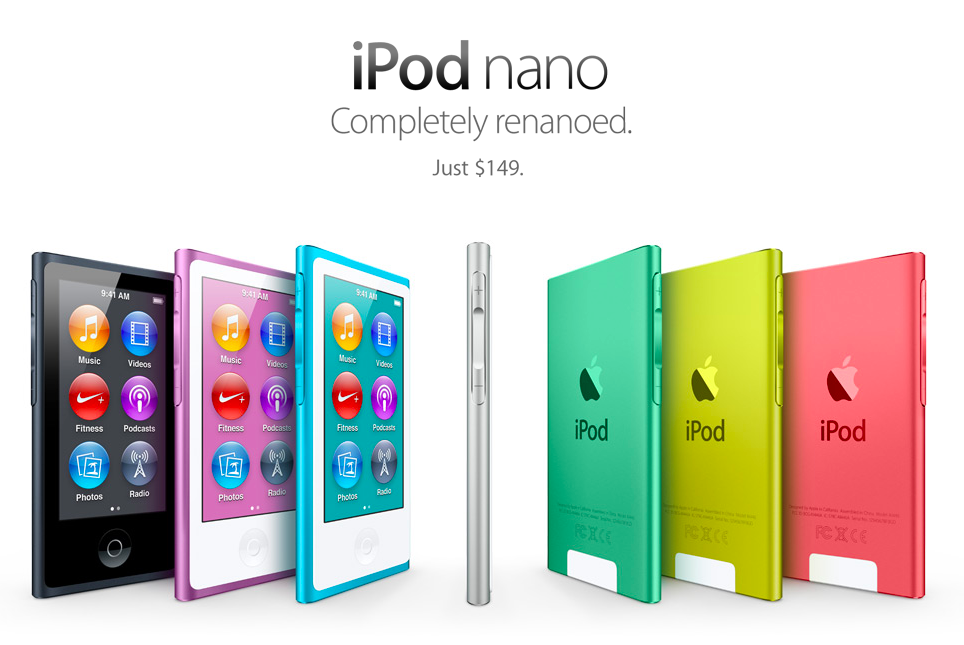 The new Nano: Hey, lots of fun colors here, and a larger screen! I’d actually like to see the breakdown on how many people own both an iPhone AND some sort of an iPod. I see very little place where the iPhone and iPods don’t overlap, and even if I were an Android phone user or a kid who wanted an iPod, it would be the touch, not the nano. I know Apple likes to show runners and such using the nanos and shuffles and but really, how heavy is the touch? Anyway, if you are a nano fan, this update is I’m sure a nice one, but really, just get an iPhone or iPod touch people. You’re missing out.