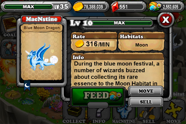 DragonVale: How to breed a Blue Moon Dragon