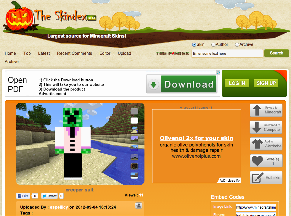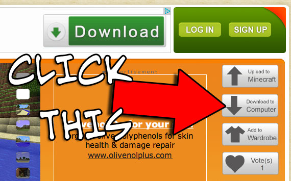 Step 02: Search for and download a skin you’d like to use. I use the site minecraftskins.com, but there are others. Once you’ve found your skin, hit the DOWNLOAD TO YOUR COMPUTER button (not the big green DOWNLOAD button)