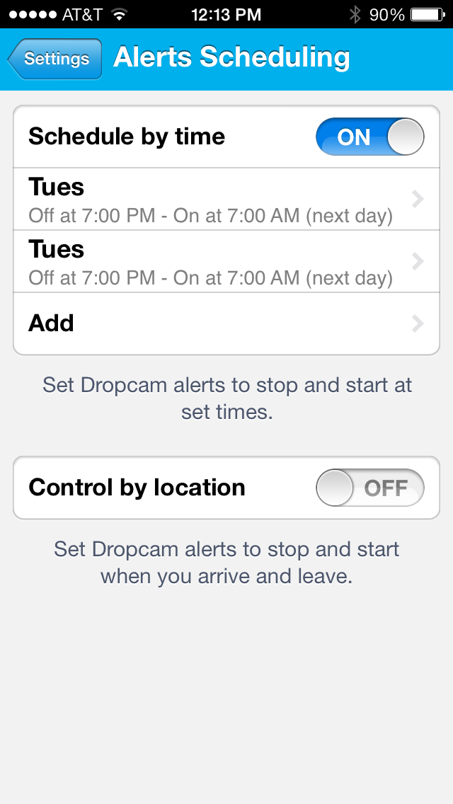 There are a slew of other nice features, such as both time and location-based recording, meaning you can set your DropCam to record at specific times, or, based on when you leave the house. This is achieved by the DropCam monitoring your iPhone’s location. So if, for instance you wanted to only record when you are at work, and not when you are home because you do a lot of disgusting, illegal things when you are home, it would do so automatically.