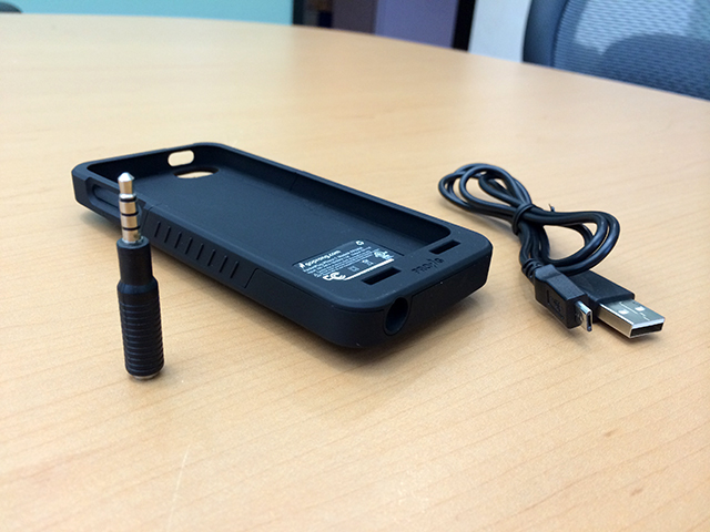 The second and a bit more annoying issue is, while you can still use the iPhone’s built-in speaker for calls and music, using the headphones with this case requires a small audio adapter, which to me totally screws up the “no need to bring a chord with you” selling point of the case. The audio jack is so far recessed into the case that they included a 2-inch long thin audio adapter that sticks out from the case about a good (or bad) inch. I’m not a huge headphone wearer, but I DO listen to my music in my car through a mini stereo cable a lot, which is where I have to leave this audio adapter. This adapter is all but sure to get lost at some point, but how annoying this is depends on how much you use your iPhone’s audio jack vs bluetooth solutions. Somehow I feel that the PocketPlug 2 is going to address this better by providing a larger headphone hole or slimmer butt.